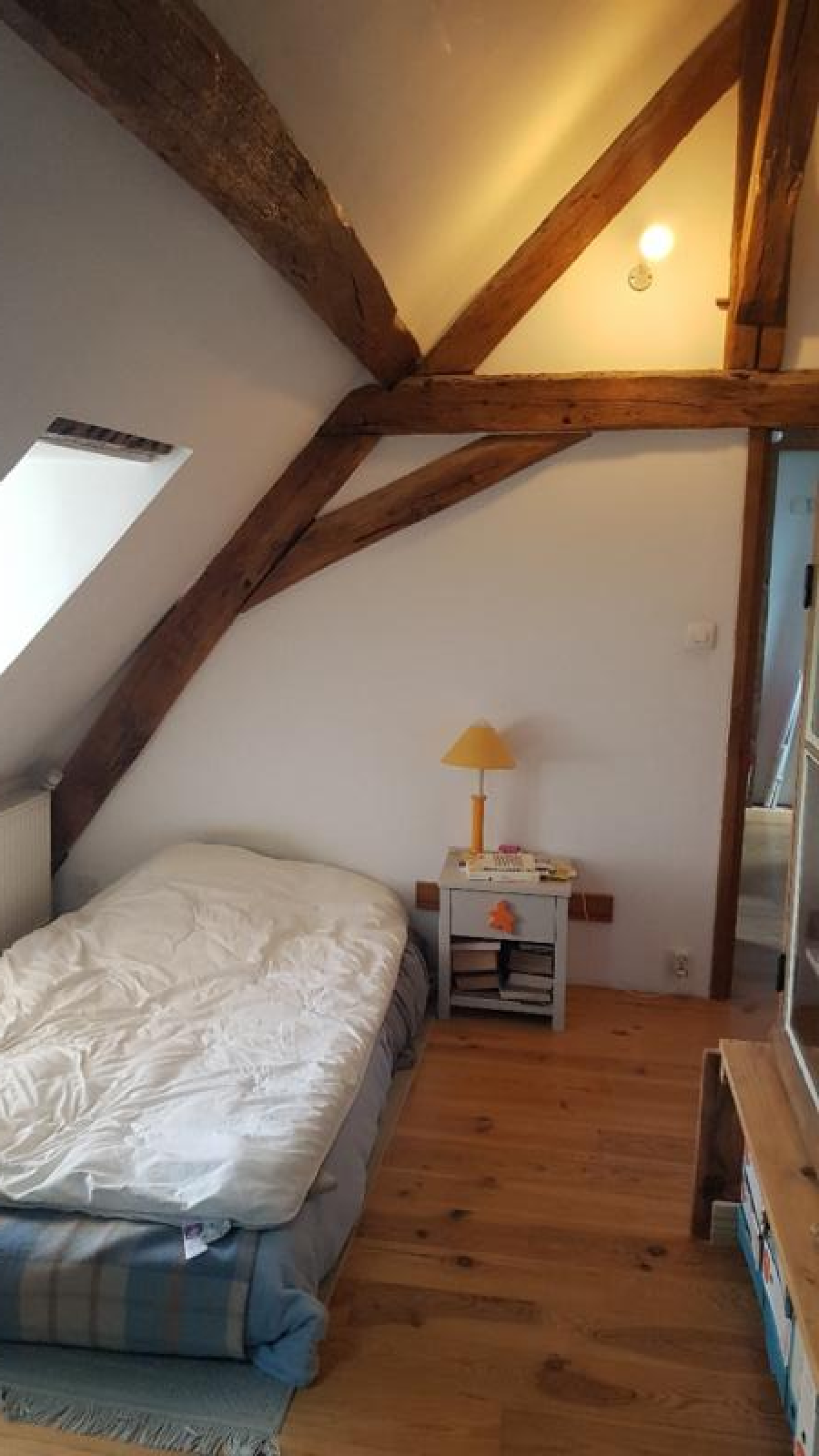 Quartier Madeleine, charmante maison à continuer de rénover comprenant au rez-de chaussée, une grande pièce pouvant accueillir la cuisine et donnant sur la terrasse extérieure. A l'étage, par un magnifique escalier en ardoise on accède à un bureau, une chambre avec le charme des poutres apparentes et un maginifque mur en briques, une salle de bain. À l'extérieur, vous disposerez d'un jardin d'une surface de 45m² et une terrasse occupant 45m² .