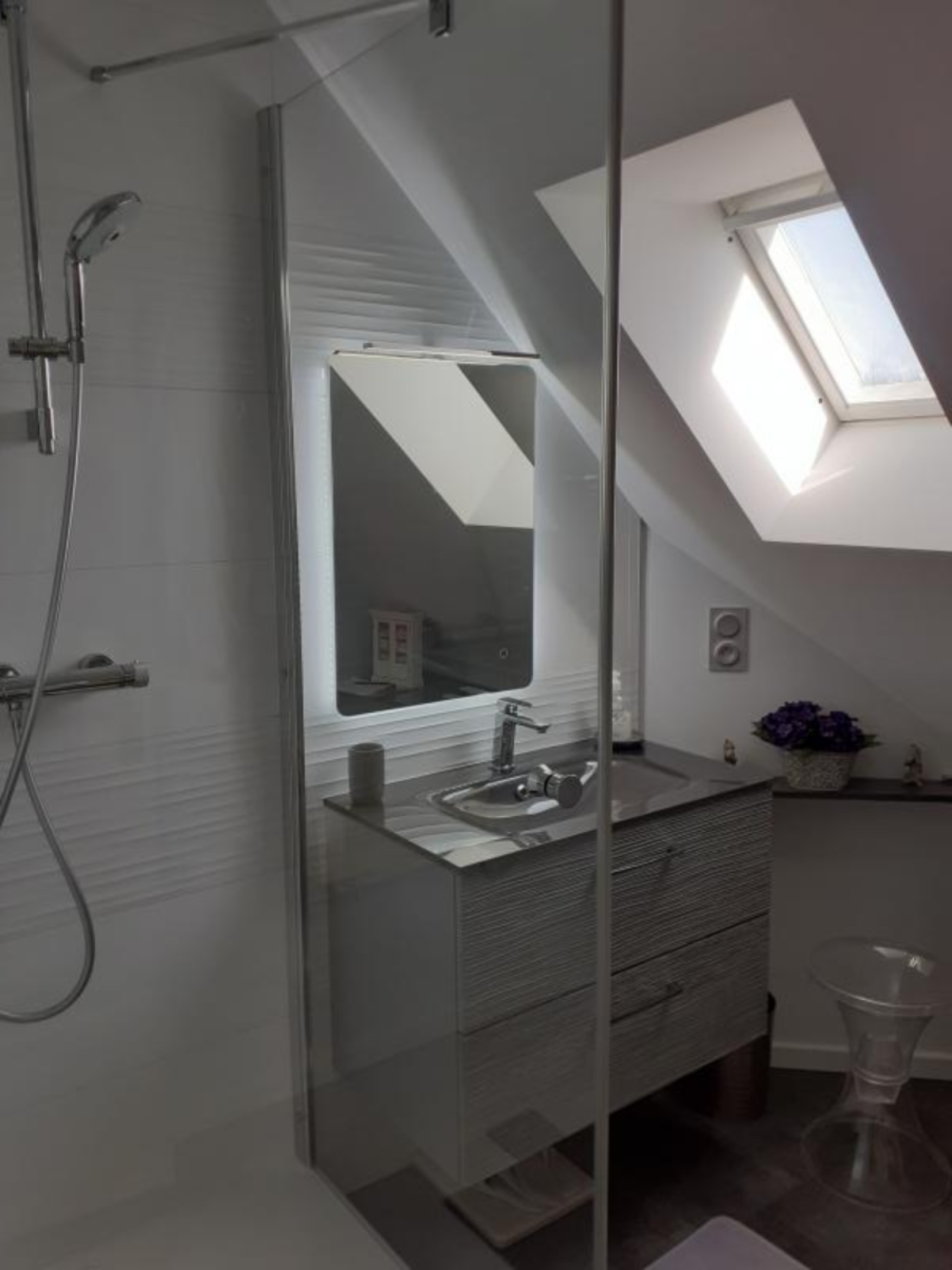 A l'étage, on trouve 3 chambres dont une suite parentale avec dressing et salle de bain et il y a la possibilité de créer une 4ème chambre. De plus,on trouve une salle d'eau récente et un wc.